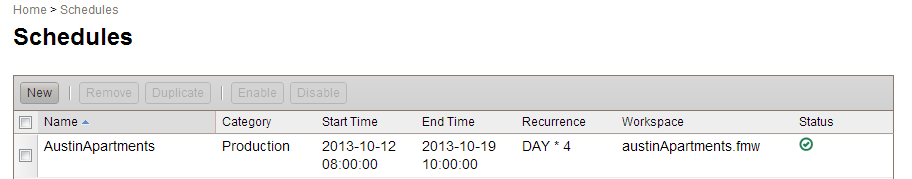 In this example, the task recurs every four days starting on 12-Oct-2013 at 8pm and ending on 19-Oct-2013 at 10am.