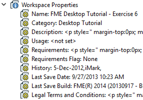 Adding Workspace Properties is optional, but it is a good example of FME Best Practice. It is especially helpful to include this information when you are creating templates.