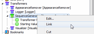 Right-click on the transformer name in the Navigator, and select Link. The transformer icon color changes to light-blue to indicate it is now linked instead of embedded.