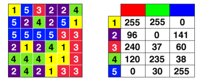 Interpretation on palettes works in much the same way as it does on bands. The interpretation of a palette key must match the interpretation of the related band. Valid palette key interpretations are UInt8, UInt16, and UInt32. The palette value interpretation may be a color model such as RGB or RGBA or string data. Valid palette value interpretations are RGB24, RGBA32, RGB48, RGBA64, Gray8, Gray16, and String.