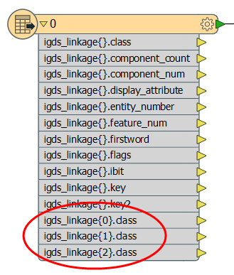 The empty curly brackets indicate an unqualified list name. That is, there are a number of actual attribute values, or elements, present on the feature. However, it is not possible to directly access values from an unqualified list name. Instead, these names can be used as parameters in the various transformers that operate on lists.