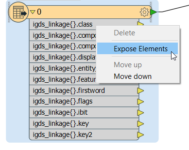 To expose the elements of a list attribute, right-click on one in a reader or transformer, and select Expose Elements.