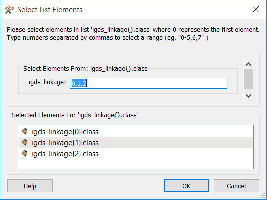 In the Select List Elements Dialog, enter the index integers of the elements you want to expose. Keep in mind that the first element of a list is always index integer 0.