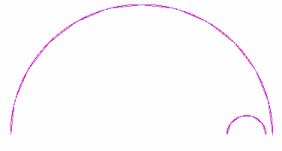 Consider two arcs with the same sweep angle of 180 degrees and primary radius of 10 and 1.5 units respectively.