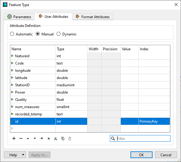 The feature operation will be determined by the attribute fme_db_operation on each input feature. The value of fme_db_operation will be processed according to the steps below. Note: The processing steps listed below depend on a format's available Feature Operation options.
