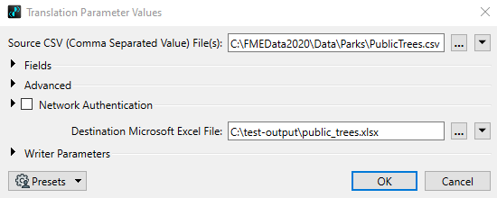 Tip Remember that you can also drag .fme files directly to the FME window. Depending on the requirements of the mapping file, another dialog box will appear requesting additional parameters, or the file will start to