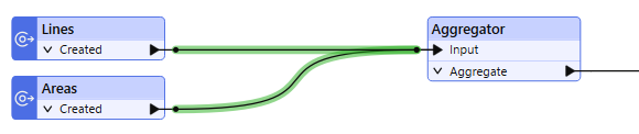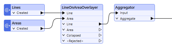 If you delete a transformer from a workspace, FME will try to repair any connections from the deleted transformer. For example, deleting the LineOnAreaOverlayer transformer below removes the transformer and repairs the connections in the workflow, reconnecting to the transformer on the right: