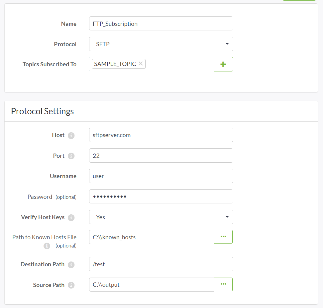 Creating an SFTP Subscription