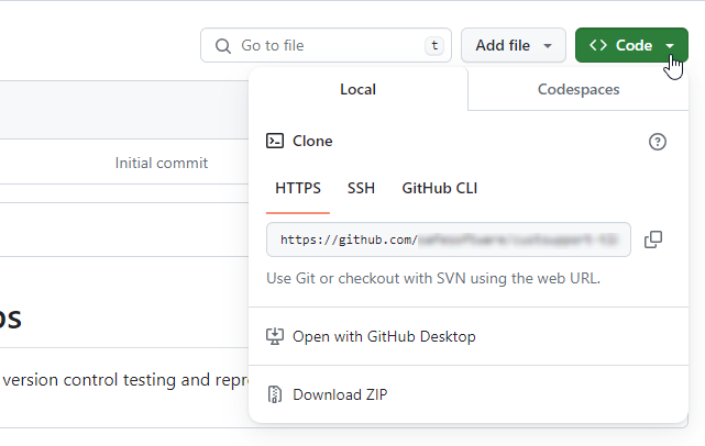 Tip: You can find this value in GitHub, under the Code menu of the applicable repository.