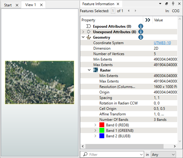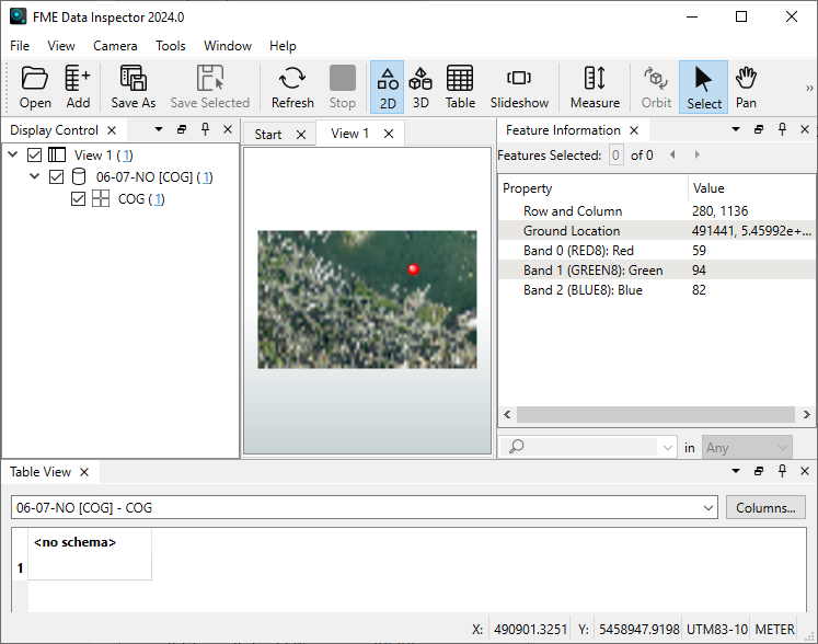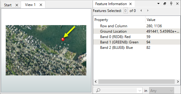 A single click onto a raster dataset queries the cell under that click and produces output in the Information Window.