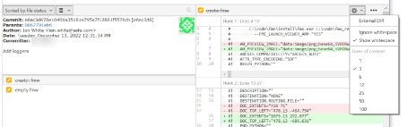 5. Select a commit that has a change to a .fmw file, and click on the .fmw file.