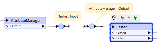 To make your workspace appear cleaner, you may wish to hide some or all of the connections between readers, writers, and/or transformers. When you hide a connection, it is still active, even though it no longer appears on the canvas.