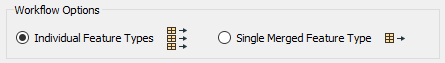 Workflow options determine the number of feature types that will be displayed on the canvas. Selecting either one will not affect the outcome of the workspace: these options determine only how the feature types appear on the canvas, and how they are interpreted within the workspace.