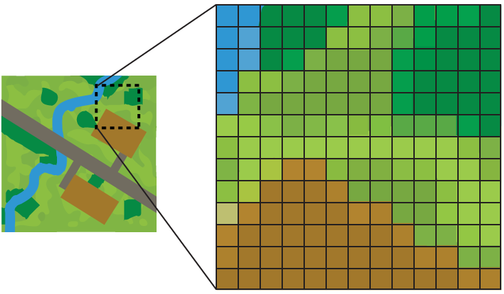 A Raster feature is a set of cells, not an individual cell. Cells do not generally have attributes, but may possess a single value or color. |