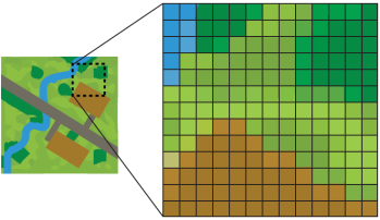Rasters may represent image or numeric data. Images are commonly derived from satellite data or photography, while numeric data often represents elevations, temperatures, and other quantitative information.
