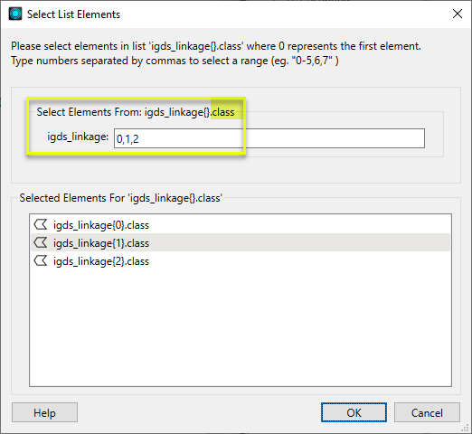 In the Select List Elements Dialog, enter the index integers of the elements you want to expose. Keep in mind that the first element of a list is always index integer 0.