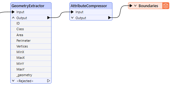 Features passing through the transformer are output with their attribute names unchanged, but the selected values compressed. The AttributeDecompressor can be used to read them, either elsewhere within the workspace or in a different workspace.