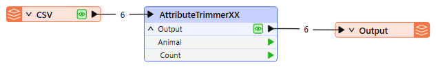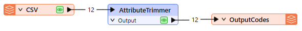 All features from the CSV file are routed into an AttributeTrimmer.