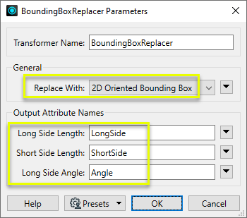 When Replace With is set to 2D Oriented Bounding Box, an additional attribute is enabled to extract the oriented box’s angle.