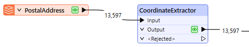 Features where either an invalid Coordinate Index or invalidDefault Z Value has been provided will be routed to the <Rejected> port.