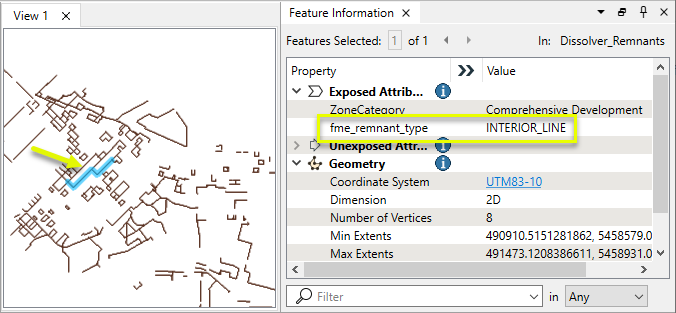 Geometries left over after dissolving. Remnants receive an fme_remnant_type attribute with one of the following values: