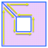 The connections between holes and the outer shell generally consist of duplicate segments in opposing directions (cycles).