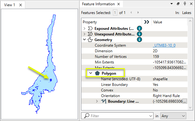 In this example, we have two feature types - lakes and islands. Note that small lakes appear to be present inside the largest lake.