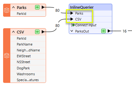 When the InlineQuerier is first placed in the workspace, it has no Input or Output ports.