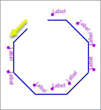 Label insertion points are placed below the feature. Where a line segment is vertical, labels are placed to the right, relative to the feature orientation. |