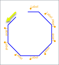 Label insertion points are placed above the feature. Where a line segment is vertical, labels are placed to the left, relative to the feature orientation. |
