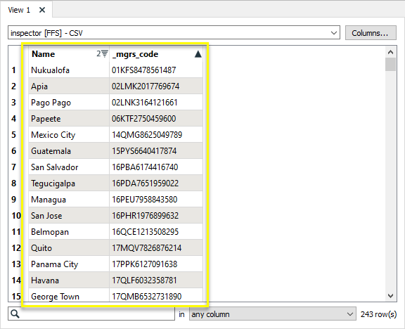 In this example, we have a CSV file of cities with associated MGRS codes. They have no geometry.