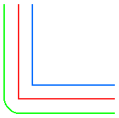As the diagrams below illustrate, the corner styles of the offset curves can be Round (default), Bevel (chopped), or Miter (pointed). If Miter is used, a limit must be specified using the Miter Limit parameter. If a corner is too pointed for the miter limit, the corner will instead be beveled. Round