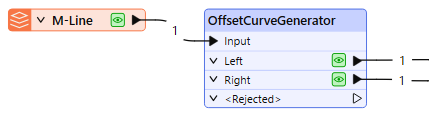Each point in the output curve will be the specified offset, measured in ground units, away from the input linear geometry. The output ports Left and Right will produce offset curves on either side of the input geometry.