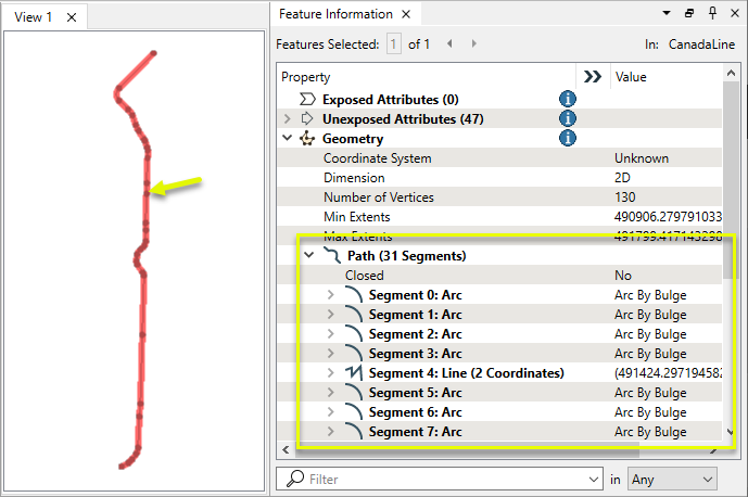 The output features may have either line or arc geometry, and retain the input path’s attributes unless a Segment List list attribute is provided, as shown in the Paths and List Attributes example below.
