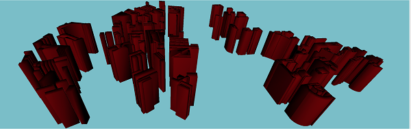 Use the “Generate Configuration Template” action to generate a config JSON template attribute of the CGA attributes defined in an extrusion .rpk file. Edit the JSON attribute to change the building color and building height. In another CityEngineModelGenerator, use the “Generate Model” action to apply the JSON attribute and .rpk on input footprint geometry.