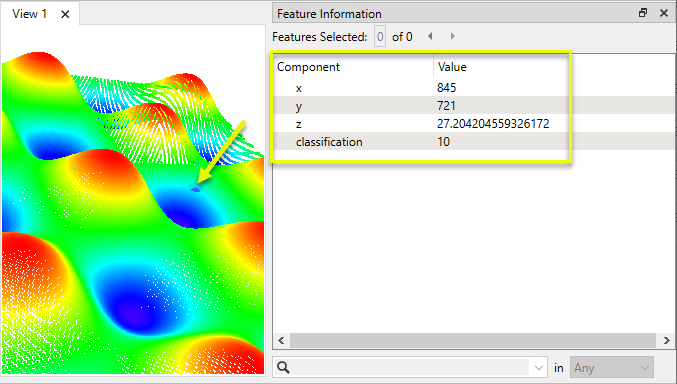 Separates point clouds into multiple features based on component values, color, or first/last return. |