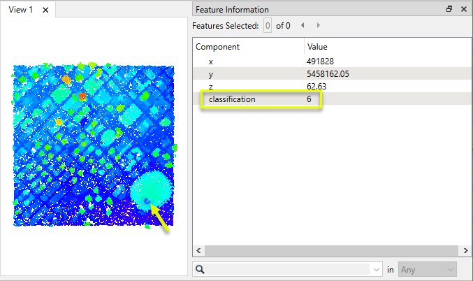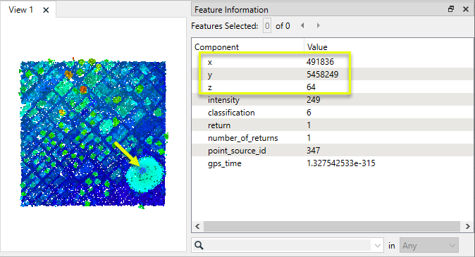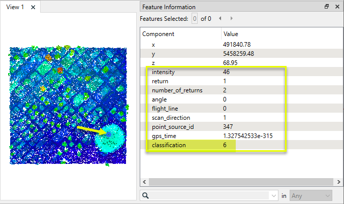 Separates point clouds into multiple features based on component values, color, or first/last return. |