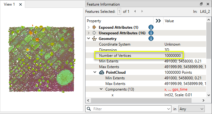 The point cloud output from the NotMerged port contains 13,035,567 points that were in the original and did not appear in the thinned version - therefore, they were deleted.