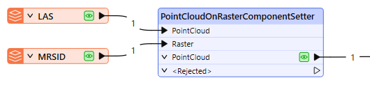 The PointCloudOnRasterComponentSetter receives two sets of input features, PointCloud and Raster, which must be in the same coordinate system and units.