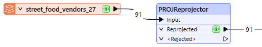 The PROJReprojector receives raster, vector, or point cloud features and reprojects their coordinates from one coordinate system to another, using PROJ coordinate system definitions and PROJ reprojection library.