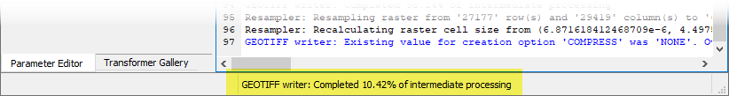 The writer is where both the reprojection and pyramiding operations occur, as can be observed in the status bar while the workspace is running.