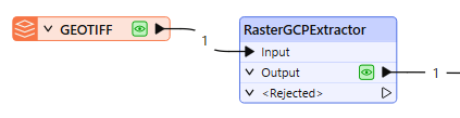 The RasterGCPExtractor receives raster features and extracts any Ground Control Points (GCPs) that exist as a raster property on the input feature. The following attributes are added to the output features: