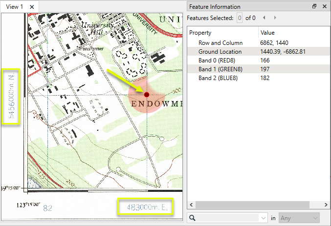 The first GCP will pair the cell (1440, 6862) with the x,y,z coordinates (483000, 5456000,0). For the purposes of this exercise z is not important, and so is set to zero (0).