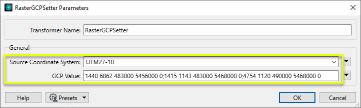 Alternatively, to apply our GCPs, we will use a RasterGCPApplier transformer from the FME Hub.