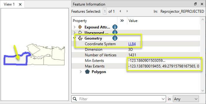 - This transformer operates on features with geometry. To reproject coordinates stored as attributes, see the AttributeReprojector or CsmapAttributeReprojector.