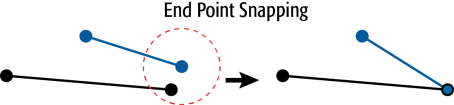 The example below illustrates end points of two line features snapping together.
