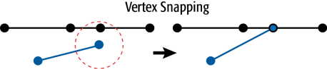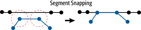 The example below illustrates vertices of a segment snapping to another segment.
