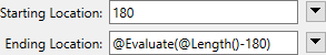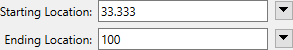 When Snipping Mode is Distance (Value), Distance (Percentage), Measure (Relative to Start Point), or Measure (Value), specify the first snipping point on the feature as a numeric value. |