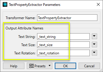 The TextPropertyExtractor receives features with text geometry and extracts their properties into attributes.