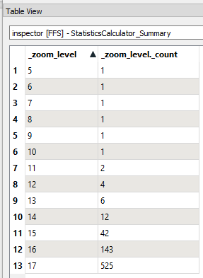 A total of 740 tiles are produced from the original. The number of tiles per zoom level can be analyzed with a StatisticsCalculator.
